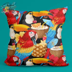 Tropical Birds Decorative Poly Linen Cushions & Covers