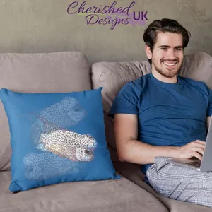 Blue Flowerhorn Fish Decorative Poly Linen Cushions & Covers