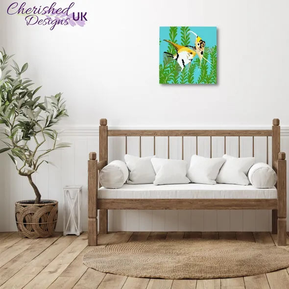 Sizes available: 20 x 20 cm (8" x 8") - 30 x 30 cm (12" x 12") - 41 x 41 cm (16.14" x 16.14")This design is printed onto canvas then stretched tightly around the edge and neatly folded at the corners before being invisibly secured to the superior cardboard frame.