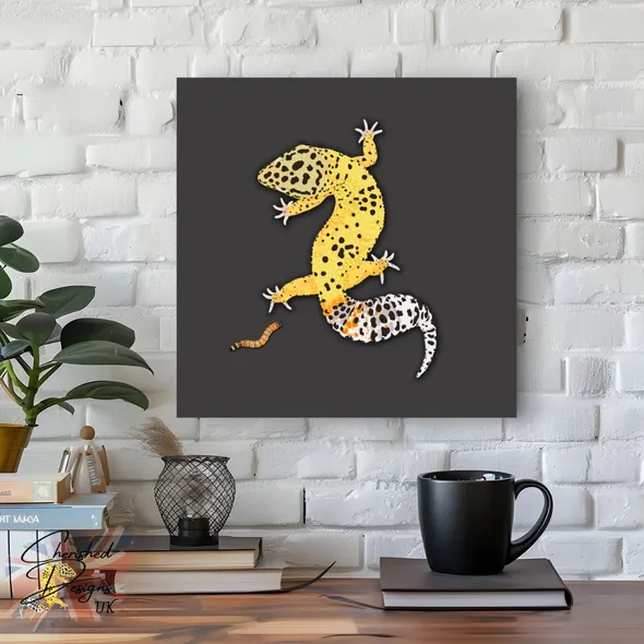 WELCOME TO CHERISHED DESIGNS UK … THANK YOU FOR CHECKING OUT OUR ITEMThis stylish minimalist Leopard Gecko wall art design will appeal to any gecko lover! Hand drawn by our very own Designer this artwork is exclusive to Cherished Designs UK.