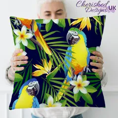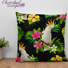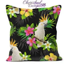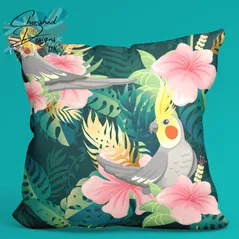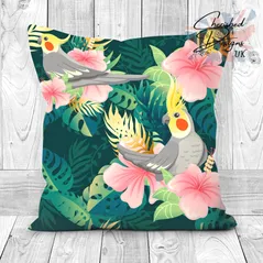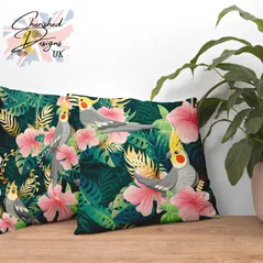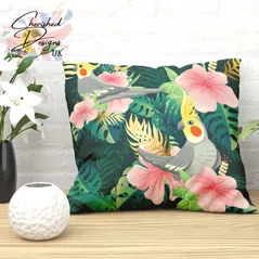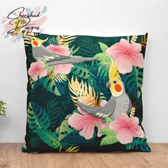 Tropical Cockatiels Decorative Poly Linen Cushion & Covers