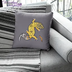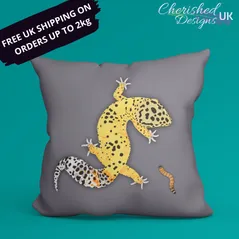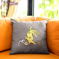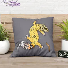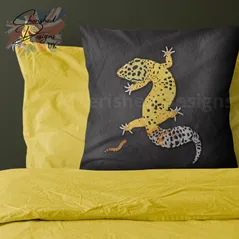 Yellow Leopard Gecko Dinner Decorative Poly Linen Cushion & Covers