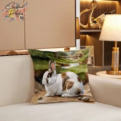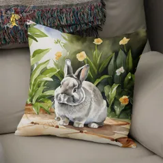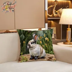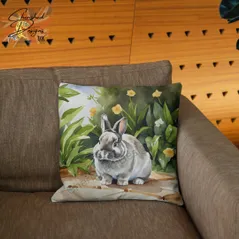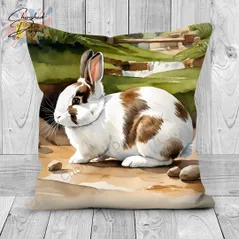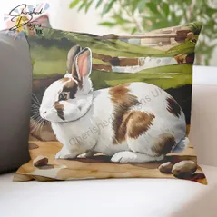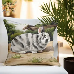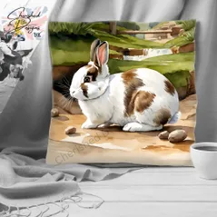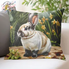 Broken Netherland Dwarf Rabbit Decorative Poly Linen Cushion & Covers