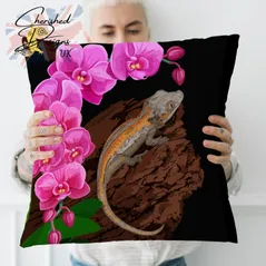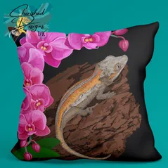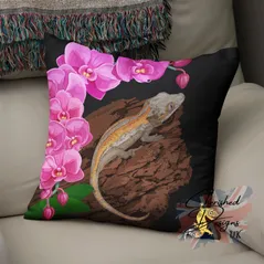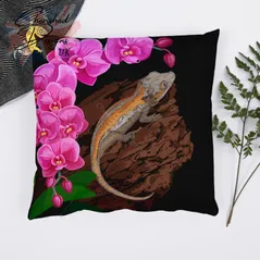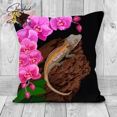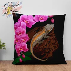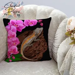 Gargoyle Gecko Under Orchids Decorative Poly Linen Cushion & Covers