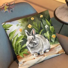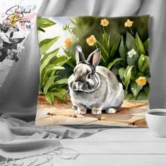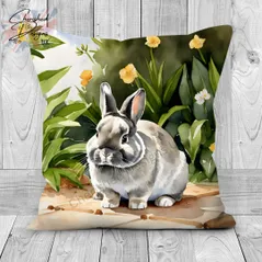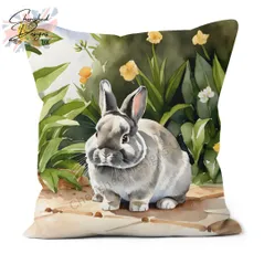 Smoke Netherland Dwarf Rabbit Decorative Poly Linen Cushion & Covers