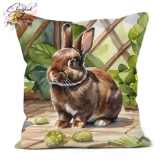 Choc Netherland Dwarf Rabbit Decorative Poly Linen Cushion & Covers