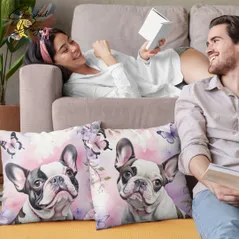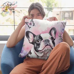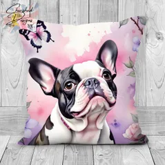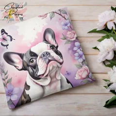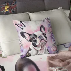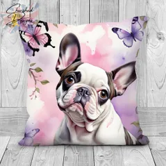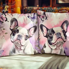 Piebald French Bulldog Decorative Poly Linen Cushion & Covers