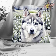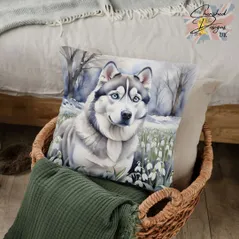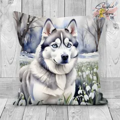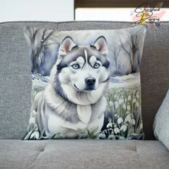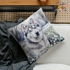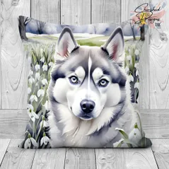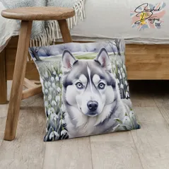 Grey Siberian Husky Decorative Poly Linen Cushion & Covers