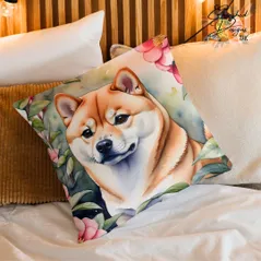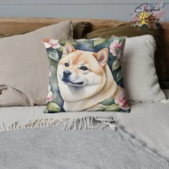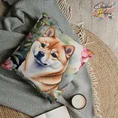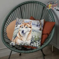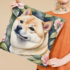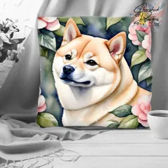 Cream Shiba Inu Decorative Poly Linen Cushion & Covers