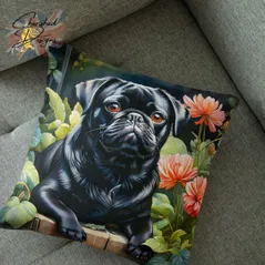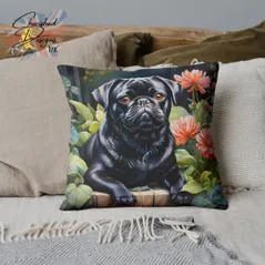Black Pug Decorative Poly Linen Cushion & Covers