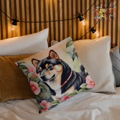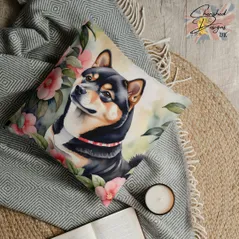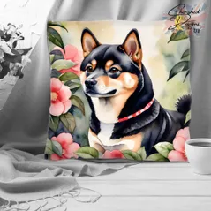 Black Tan Shiba Inu Decorative Poly Linen Cushion & Covers