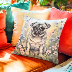 Merle Pug Decorative Poly Linen Cushion & Covers