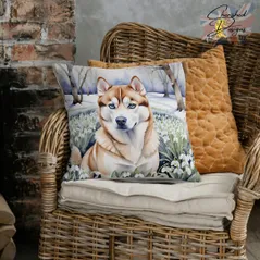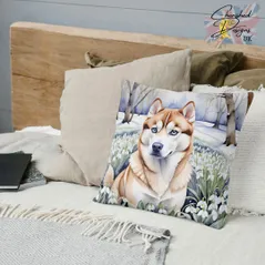 Red Siberian Husky Decorative Poly Linen Cushion & Covers