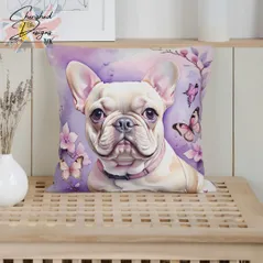 Cream French Bulldog Decorative Poly Linen Cushion & Covers