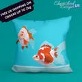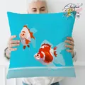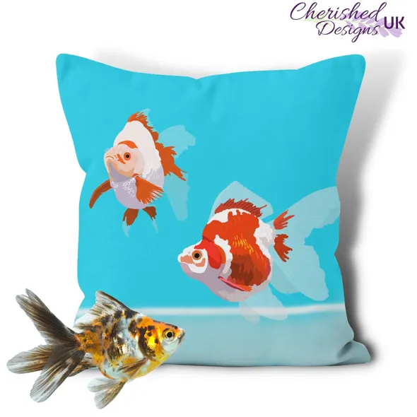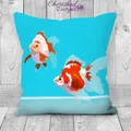 WELCOME TO CHERISHED DESIGNS UK … THANK YOU FOR CHECKING OUT OUR ITEM The stunning turquoise background contrasts beautifully with the white and oranges of the two gorgeous Ryukin Fantail Goldfish designed by our DeeDee and we know it will brighten any room! Created by the Japanese their contours are distinctly egg-shaped with long flowing fins (there is also a shorter tail version) and come in a range of colours and pattern. They are available in 30x30 cm (12"x12") … 45x45 cm (18"x18") and 60x60 cm (24"x24") sizes (please note the largest size is huge as stated by our customers!) Our cushions come with or without the plump inners... if you choose to have your cushions with an inner you will be pleased to know they are made from 100% hygienic faux fibre filling to give a plump yet luxurious feel, they conform to BS 5852 UK fire safety regulations. All our zips are sewn using an invisible style to provide a clean look and easy care provision. Our cushion covers can be fully machined washed without fear of the gorgeous image fading.