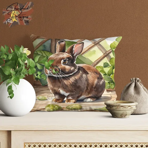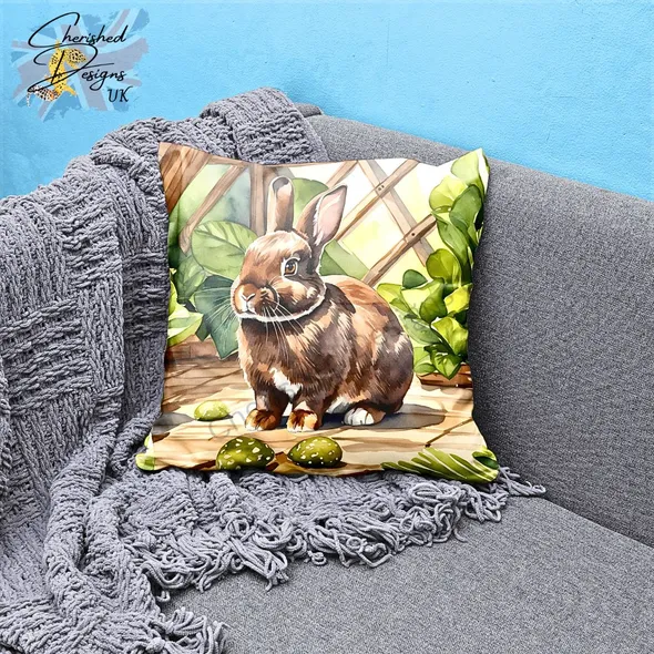 Choc Netherland Dwarf Rabbit Decorative Poly Linen Cushion & Covers