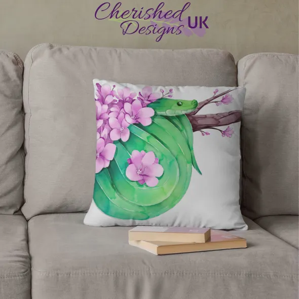 WELCOME TO CHERISHED DESIGNS UK … THANK YOU FOR CHECKING OUT OUR ITEM This pretty Green Tree Python cushion was designed to mix and match with the Brown Python cushion and will not look out of place in any snake lovers home. Pythons are hugely popular in the reptile keeping hobby and now come in a wide range of colours and patterns. They are available in 30x30 cm (12"x12") … 45x45 cm (18"x18") and 60x60 cm (24"x24") sizes (please note the largest size is huge as stated by our customers!) Our cushions come with or without the plump inners... if you choose to have your cushions with an inner you will be pleased to know they are made from 100% hygienic faux fibre filling to give a plump yet luxurious feel, they conform to BS 5852 UK fire safety regulations. All our zips are sewn using an invisible style to provide a clean look and easy care provision. Our cushion covers can be fully machined washed without fear of the gorgeous image fading.