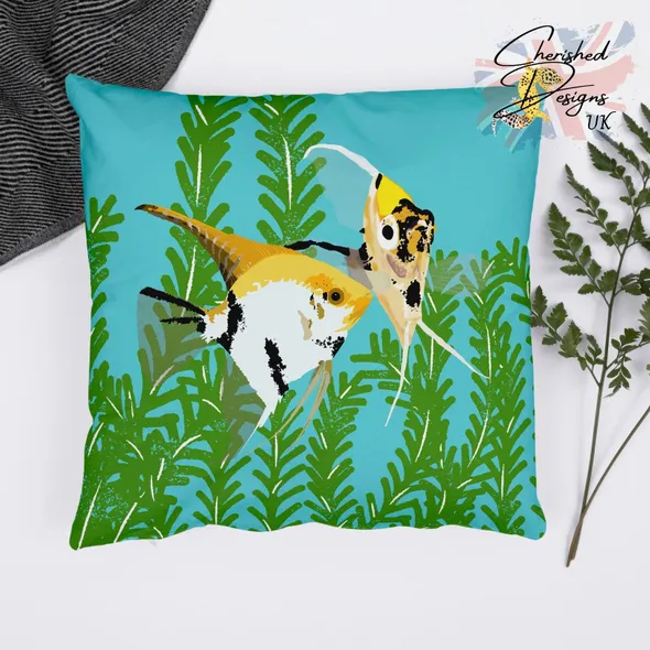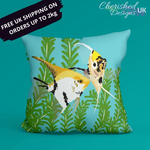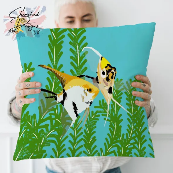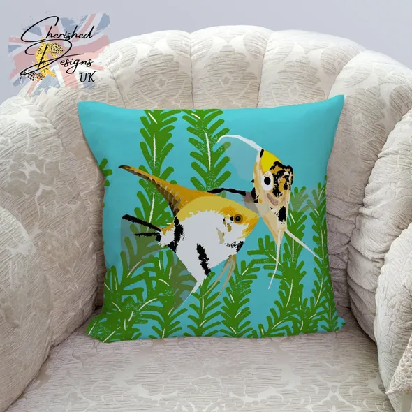 WELCOME TO CHERISHED DESIGNS UK … THANK YOU FOR CHECKING OUT OUR ITEM The beautiful Koi Angelfish have been bred to accentuate their black, white, yellow and orange markings and coloration. It is this mottled coloration that gives them their common name as they similar to the ornamental Koi Carp kept in ponds around the world. Their random patterns and coloration makes every fish unique and they really brighten an Aquarium just as this pillow will surely brighten your room. They are available in 30x30 cm (12"x12") … 45x45 cm (18"x18") and 60x60 cm (24"x24") sizes (please note the largest size is huge as stated by our customers!) Our cushions come with or without the plump inners... if you choose to have your cushions with an inner you will be pleased to know they are made from 100% hygienic faux fibre filling to give a plump yet luxurious feel, they conform to BS 5852 UK fire safety regulations. All our zips are sewn using an invisible style to provide a clean look and easy care provision. Our cushion covers can be fully machined washed without fear of the gorgeous image fading.