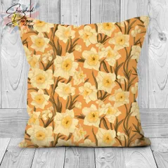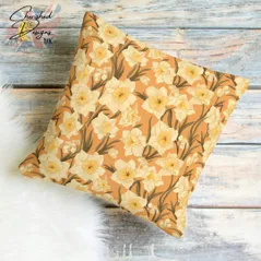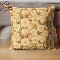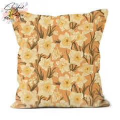 Peach Spring Daffodils Decorative Poly Linen Cushions & Covers